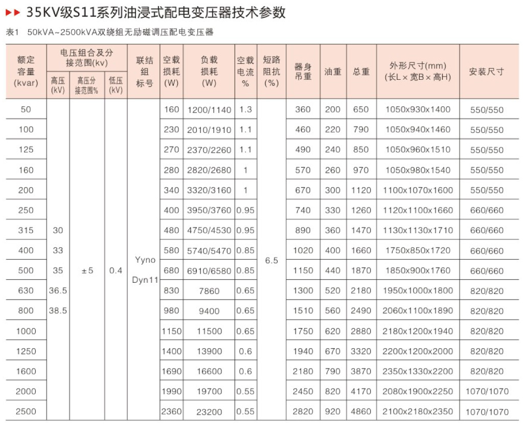 S11系列產(chǎn)品在S9系列的基礎(chǔ)上,空載損耗平均降低了30%;空載電流比S9下降70-85%;平均溫升降低10K,產(chǎn)品使用壽命增加一倍多,即使在超負(fù)載20%的條件下仍可長(zhǎng)期運(yùn)行;產(chǎn)品運(yùn)行噪音平均降低2-4分貝。